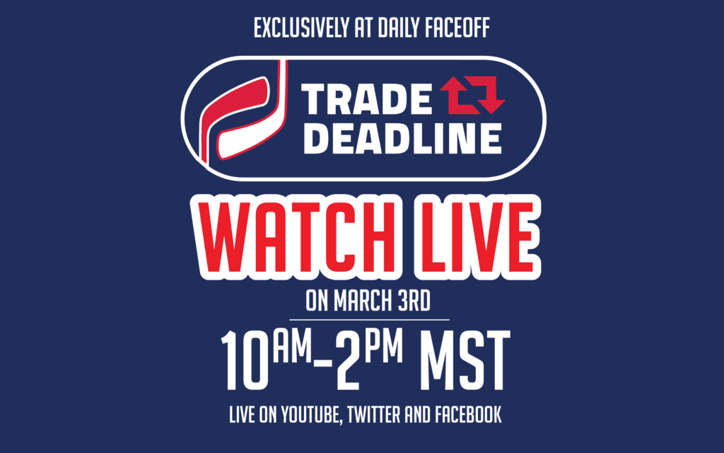 Join us on March 3rd for the Daily Faceoff Live: Trade Deadline edition as Frank Seravalli and the panel break down all of the latest rumours, news, and rumblings from around the NHL. The show will be live on YouTube, Facebook, and Twitter from 10 AM – 2 PM MT to keep you up to date on all things trade deadline no matter where you’re watching from.