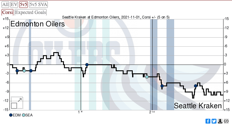 That’s why we see a shot chart that moves in the Kraken’s favour, but, to be honest, at no point during this game did it feel like the Oilers were going to lose.