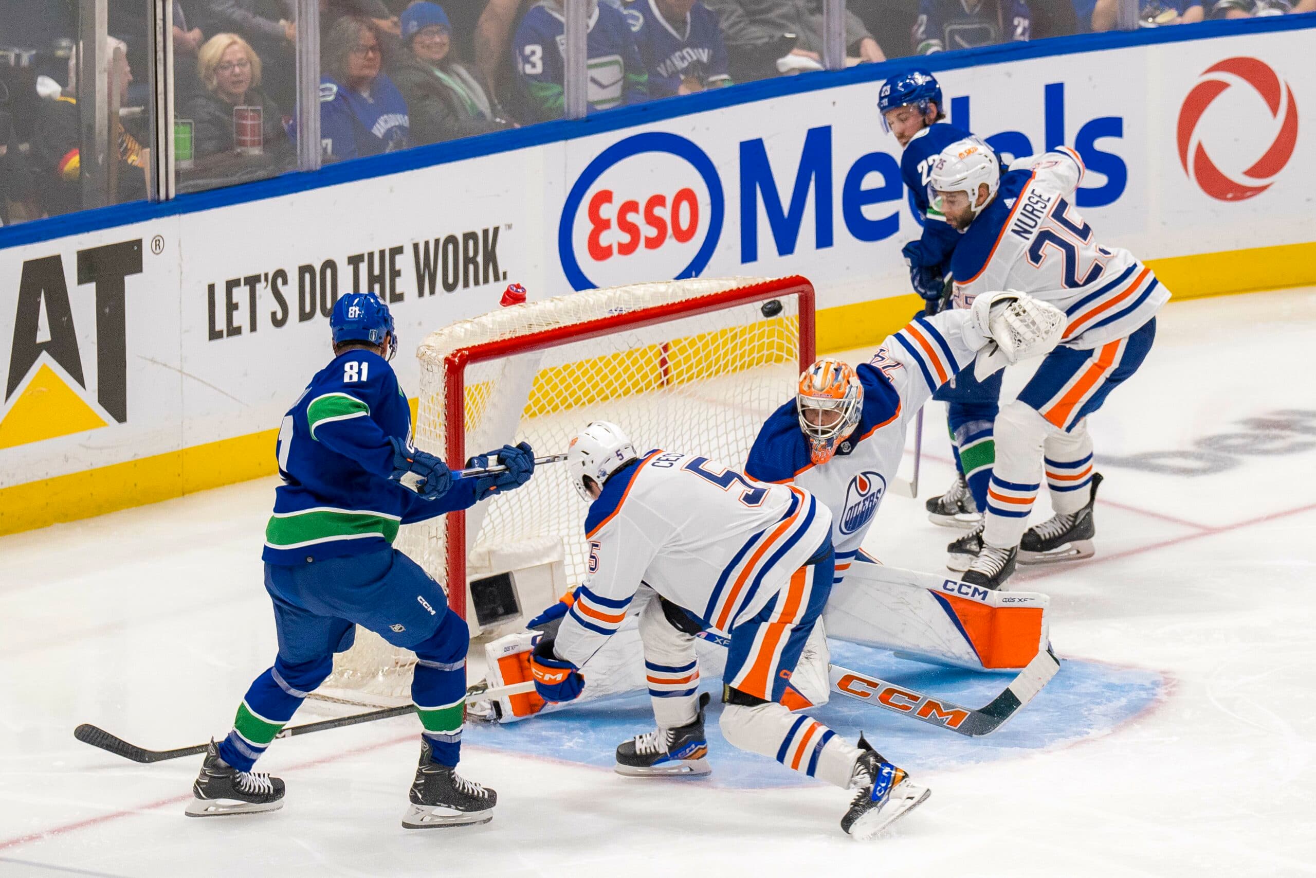 The simple, straightforward answer to this question is that Edmonton’s depth forwards must be better, particularly offensively. Ryan McLeod and Corey Perry have yet to record a single point in these playoffs, and Warren Foegele has just one 5-on-5 point, a secondary assist in Game 2 against Los Angeles. Dylan Holloway scored twice in Game 2 against LA, with Mattias Janmark earning assists on both goals, but neither have produced points in any other game. Adam Henrique scored in the first game of the playoffs, but has been unimpactful otherwise, and sustained an ankle injury in Game 5 against LA causing him to miss Game 1 against Vancouver.