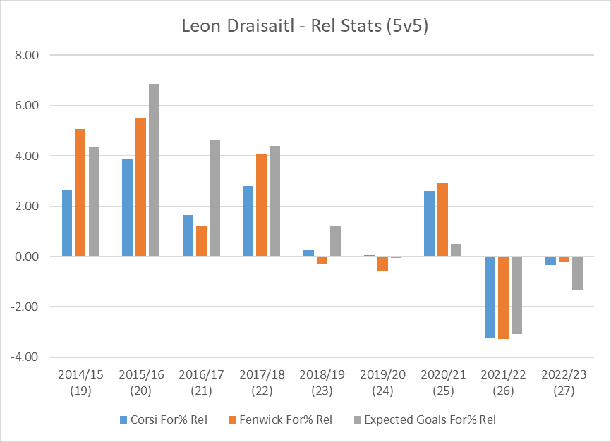 What would really improve Draisaitl’s odds of scoring 60 goals is if the Oilers had the puck more often when he’s on the ice at even-strength. Over the last two seasons, the Oilers puck possession numbers would actually decline whenever Draisaitl was on the ice. And the team would allow a higher rate of shots and chances against. Because of this and other potential issues such as aging, his rate of points per hour have gradually been decreasing. If the Oilers can figure out what these even-strength issues might be and somehow spend more time in the offensive zone when Draisaitl is on the ice, Draisaitl could potentially get some more shots and surpass that 60-goal mark. And maybe even get closer to beating Ovechkin’s modern-day single-season record of 65 goals.