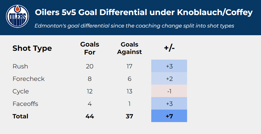 Edmonton’s rush goals per 60 has essentially doubled.