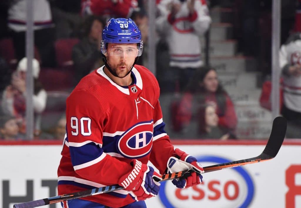 Feb 2, 2020; Montreal, Quebec, CAN; Montreal Canadiens forward Tomas Tatar (90) reacts after scoring a goal against the Columbus Blue Jackets during the second period at the Bell Centre. Mandatory Credit: Eric Bolte-USA TODAY Sports