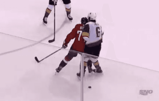 Reeves got a clip with Orpik’s stick but the Big Fella’s overreaction to contact cost a Golden Knights PP. Ref Sutherland’s arm flinched until the Oscar was presented. #TakeItLikeaMan