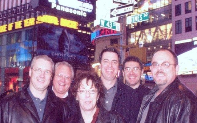 Not long ago, I was looking at a picture taken on 43rd Street in Times Square during the 2003-04 season, which isn’t really that long ago (is it?). In it, were Morley Scott, Rod Phillips, Joanne Ireland, Gene Principe, Quinn and his hair and yours truly.