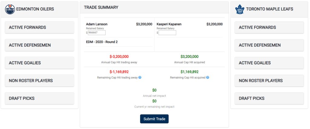 Using PuckPedia’s brand new myPuckPedia GM Mode, I took a look at what the deal might look like between the two clubs.