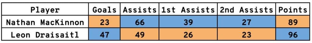 Yet, Draisaitl is still leading the league with 51 five-on-five points heading into Saturday’s games — five up on MacKinnon — while his 22 five-on-five goals are 10 higher than MacKinnon. Accounting for all situations, Draisaitl already has a 22 goal lead on MacKinnon, but trails in total points by just two, as the Avalanche star has 102 on the year.