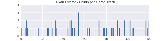 Now, let’s run the same pair of visualizations, but this time for Ryan Strome. (Note: data sourced from hockey-reference.com). Here’s the game track: