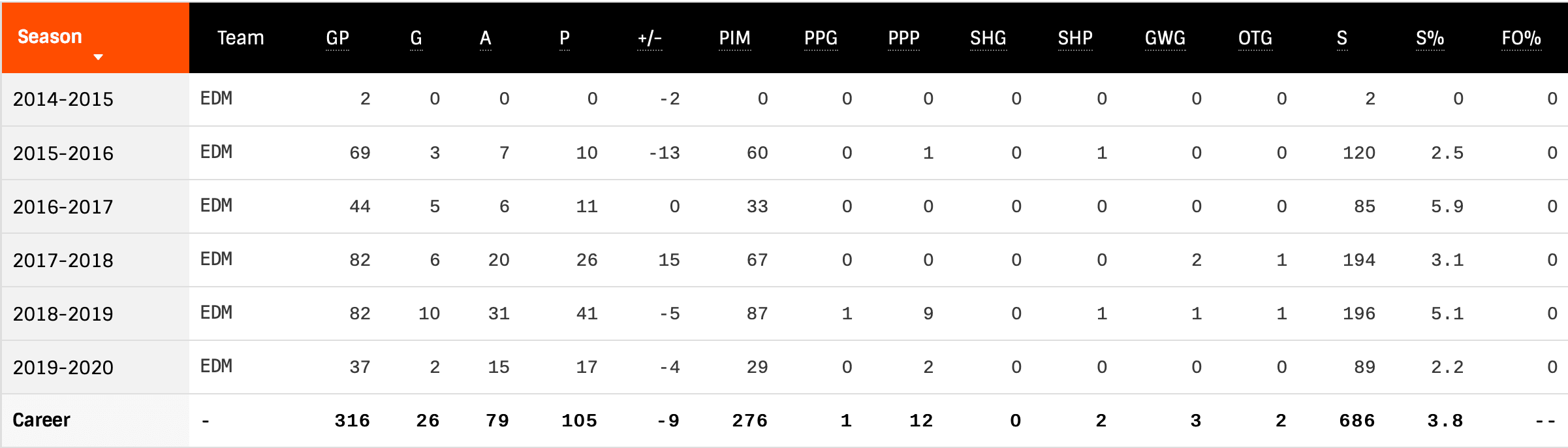 Nurse is having an alright season so far in 2019-20. He’s on pace for ~37 points, a dip from last season’s output, and his most frequent partner is @Ethan Bear, a rookie who surprisingly made the team out of camp.