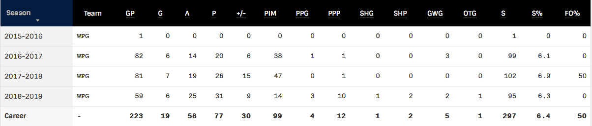 An important distinction here too is that Morrissey led the Jets in SH TOI last season, with 2:49/GM, while only playing 1:45 PP TOI/GM, so he was a much more relied upon penalty killer for a Jets PK that finished 22nd overall in the NHL at 79.2%