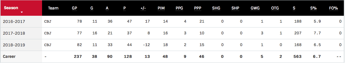 Very impressive possession numbers, with point totals that are ideal for a top-pairing defenceman. The Blue Jackets have obviously been a near-elite team for the breadth of Werenenski’s time in the NHL, so the team counts are surely a reflection on his. Not quite as much time on the ice Nurse, particularly the last two seasons, and it’s interesting that as his ice time has increased, the offence has begun to dip while he’s been on the ice, along with the goaltending numbers.