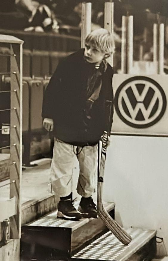 Sandra: He didn’t like ice skating very much at first, but we didn’t push it. Of course, Leon was in the locker room and sometimes in his dad’s arms after a game. Leon also watched the games on my lap with total focus, which was unusual because all the other kids were playing together, but he sat and watched.In 1998, Leon was two and a half and Peter was at the Olympics in Nagano. Leon sat in front of the TV in full ice hockey gear with skates and a stick and watched his dad. It was a bit crazy, and I smile now because Leon’s nephew Carlo (Kim’s son) is the same age and just as crazy about hockey and watching.Peter: He was around five when he started. And did he love it right away? I wouldn’t say so. It was a bit of a struggle. I remember not only one situation, but a few of them where you get up at five in the morning and drive him to practice or to a game, then you put the gear on, you have him dressed and you sweat and it’s hot and he kind of hated it. And after you’re done, he looks at you as said, “I don’t go.” It happened a few times. It’s so funny when you think about it. So, it was definitely a process.