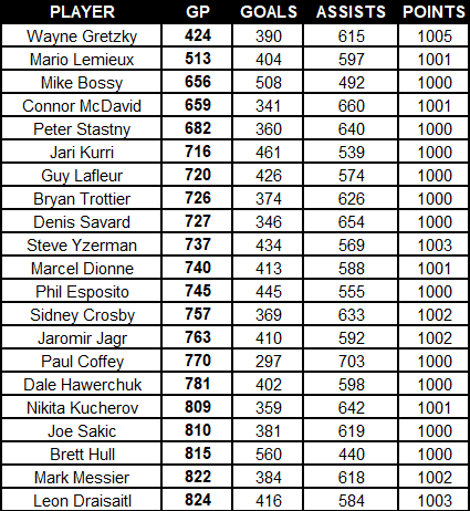 The list of players to reach 1,000 points in 824 games or fewer is extremely impressive, and Draisaitl deserves to be among them.