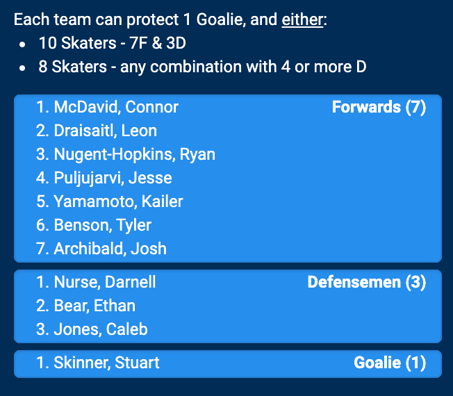 If you want to make your own list, you should go check out PuckPedia’s expansion tool and see what kind of protected list you come up with.
