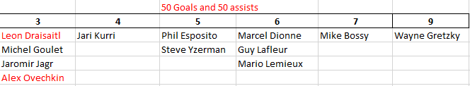 If he scores 20 goals this year, he’ll join Gordie Howe (22) and Ron Francis (20) as the only players with 20 seasons with 20+ goals. Score 30 and he will extend his record to 19 seasons. Score 40 and he’ll extend his record to 13 seasons with 40+ goals. Gretzky (12), Mario Lemieux and Marcel Dionne (10) are the only other players with double-digit seasons with 40+ goals.