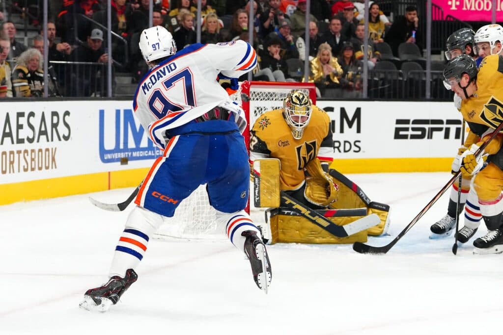2) David O. asks – The recent history of Vegas and the Oilers is giving me bad memories of Oilers-Dallas in the early 2000s: we have a team built on speed and skill, they just defend the front of the net, block every shot, get goaltending and grind out wins against us. What tactical adjustments do the Oilers need to break down the defensive shell of Vegas?