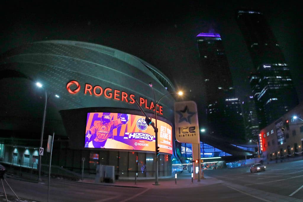 Mar 13, 2020; Edmonton, Alberta, CAN; Rogers Place sits empty as the NHL suspends games because of the COVID-19 outbreak at Rogers Place. Mandatory Credit: Perry Nelson-USA TODAY Sports