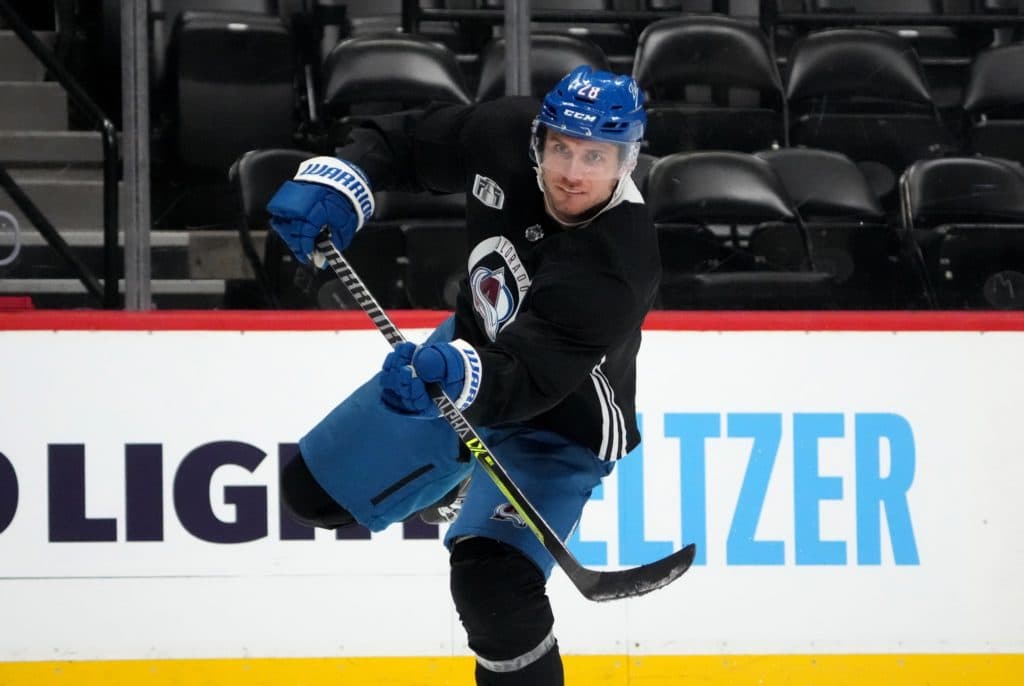 Jun 14, 2022; Denver, Colorado, USA; Colorado Avalanche defenseman Ryan Murray (28) during media day for the 2022 Stanley Cup Final at Ball Arena. Mandatory Credit: Ron Chenoy-USA TODAY Sports