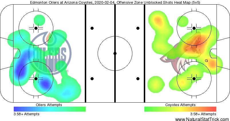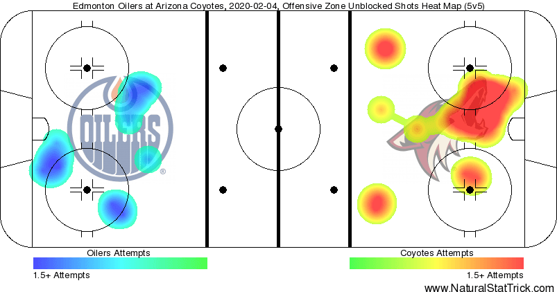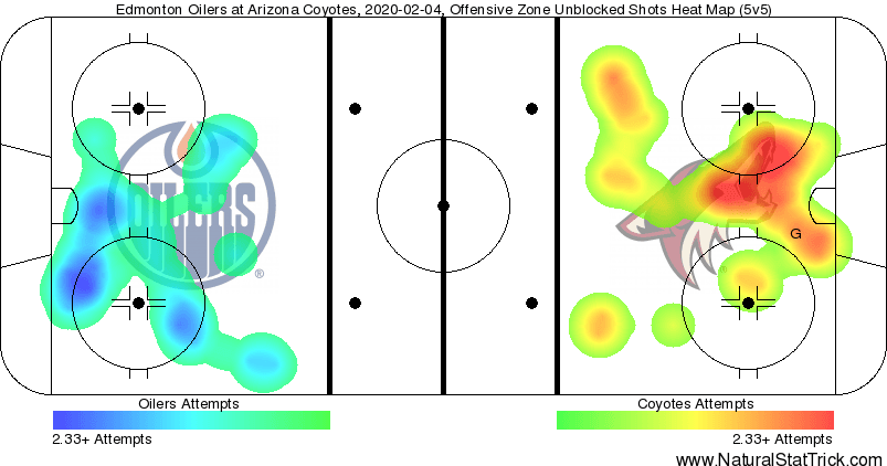 The Oilers did have an edge in special teams, earning the only powerplay opportunity of the period. However, their second-ranked road PP could not generate a shot on the Coyotes’ 8th-ranked home penalty kill.