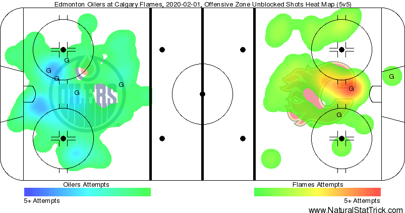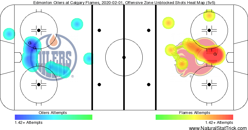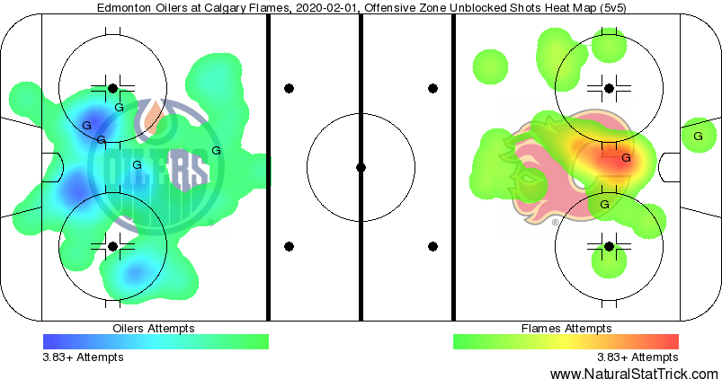 Like I said before, this game will be remembered for all the things that don’t show up in these numbers or counts– the fights, the passion, the emotion– and that’s more than fine. This is what makes hockey great, and gives the game the character that the league, it seems, has been doing its best to eradicate for a long time. That being said, before everything exploded like it did, the momentum of the Oilers being the better team carried through from the previous game. They were dominate at 5v5 for most of the game, with waves of offence attacking the Flames at a rate that the home team could not tame; they tied a record for shots in a period, and continued to be an elite special teams squad, finishing with 1/3 on the powerplay and shutting out both of the Flames’ man advantages.