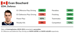 There shouldn’t be much doubt that Bouchard is the better player. He’s been one of the league’s premier offensive defencemen this year at even-strength, as his transitional ability and offensive IQ are superb.