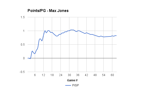 Those streaks resulted in a reasonably fluctuating P/GP for Jones.