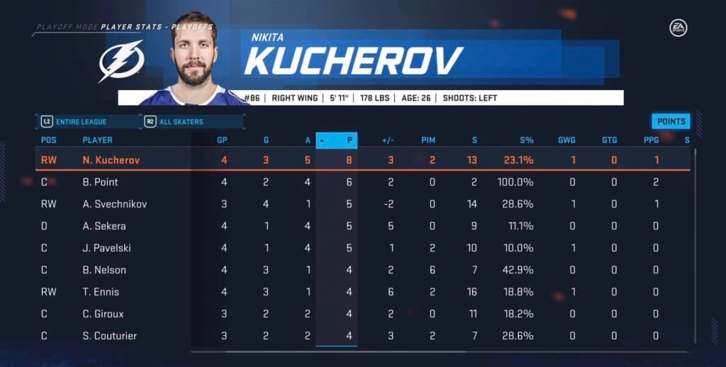 For the first time in the series, Kuznetsov (current Playoff scoring leader) did not factor in on the score sheet. Instead in this one, the Leafs pepper Vasilevskiy and he is more than up to the challenge. The Leafs D let Andersen down in OT with two breakaways, one leading to the goal.