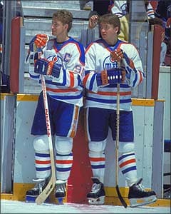 It was not certain that Jari Kurri would play with Gretzky. Glen Sather, 1980 fall: "I’ve got to get Gretzky someone to play with" and that was at a time when Kurri was on 99’s wing! It would all work out though, and by the end of Kurri’s rookie season "Gretzky to Kurri" had been written in the record book many times (and vice versa). Whatever chemistry Gretzky enjoyed with MacDonald and Callighen in year one, the Gretzky-Kurri duo quickly rose to elite status and remains the most sublime marriage of skills in the game’s history.