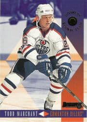 The talented pivot played one game for the Rangers after the Olympics and was dealt to the Edmonton Oilers for Craig MacTavish just prior to the March deadline. Marchant spent the lockout portion of the 1994-95 season with the AHL’s Cape Breton Oilers before scoring 27 points in 45 games as an NHL rookie. Over the next few seasons, he became a fixture in the Edmonton line up with his speed symbolizing the crux of the team’s improvement.