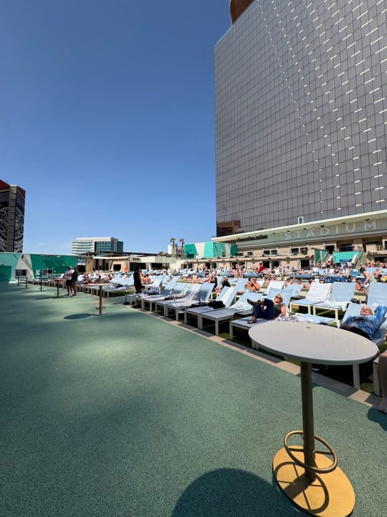 After jumping on our flight bright and early on Sunday morning, we landed in Vegas and set up at our home base at Circa Hotel and Resort. After grabbing something quick to eat and checking into our rooms, we made our way to Stadium Swim to hang out in the pool and put some bets down. If you’ve never been to Circa or Stadium Swim, I can’t recommend it enough.