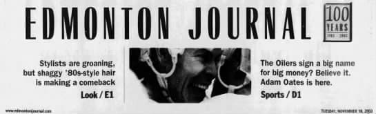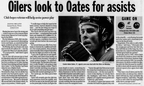 “The Oilers sign a big name for big money? Believe it. Adam Oates is here,” read the header for the following days Edmonton Journal.