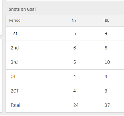 They played 92:30 of playoff hockey last night and combined for 61 shots. The Islanders never had more than six in a period. Dreadful.