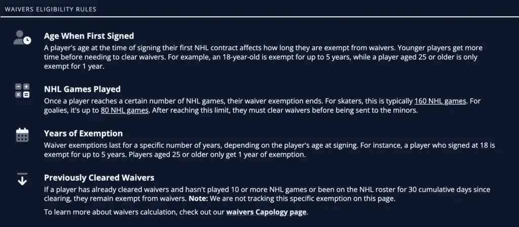 But before we dig into them in order of importance, a quick reminder about the NHL’s waiver exemption rules, thanks to PuckPedia.