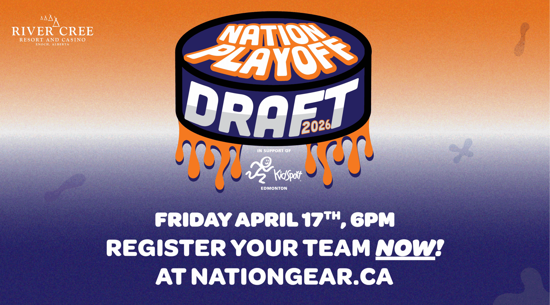 Team entry is $1,000 for groups of 8, which includes dinner and your first bevy. The night will be hosted by Ryder & Lisa from The Sauce and Tyler & Liam from ON Everyday, so expect plenty of energy, competition, and chirps. Spots are limited — sign your team up now at nationgear.ca. All proceeds from the event support KidSport Edmonton, helping ensure local kids can stay in the game.
