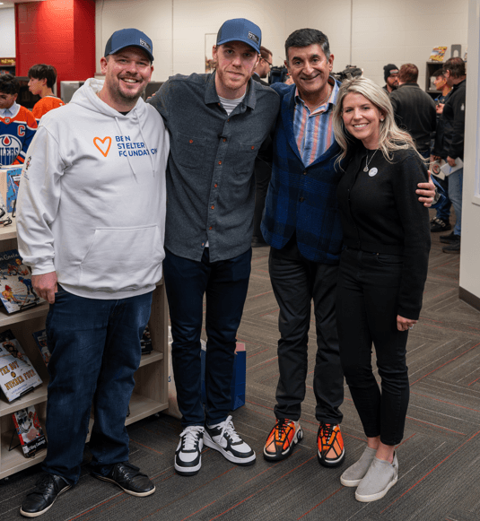 Additionally, Ashif Mawji played a key role in helping the Stelter family start the Ben Stelter Foundation and now serves as its board chair. His son, Aariz Mawji, came up with the idea for the Ben Stelter School Fundraiser, where students raised money for the foundation to earn ballots for prizes, with the grand prize being a visit from Oilers captain Connor McDavid, who formed a special bond with Ben. Last year, the fundraiser involved five schools and raised $43,000; this year, it expanded to ten schools, raising an impressive $74,000.