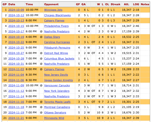 Through 21 games this season, the Oilers have a 10-9-2 record, good for fourth in the Pacific Division and the second wild card spot in the Western Conference. At a glance, that seems decent for a team struggling with a Stanley Cup Final hangover yet to hit their stride.