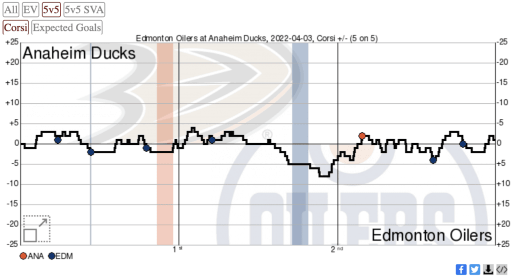 - The big story of this game was Leon Draisaitl, for a couple of reasons. Draisaitl threw a hit on Trevor Zegras early in the game and fell somewhat awkwardly into the boards. He didn’t play for the remaining few minutes in the first after he got shook up, but he did stay in the game and played in the second and third periods. Let’s hope he’s okay, because the Oilers obviously can’t afford to lose Draisaitl for any period of time.