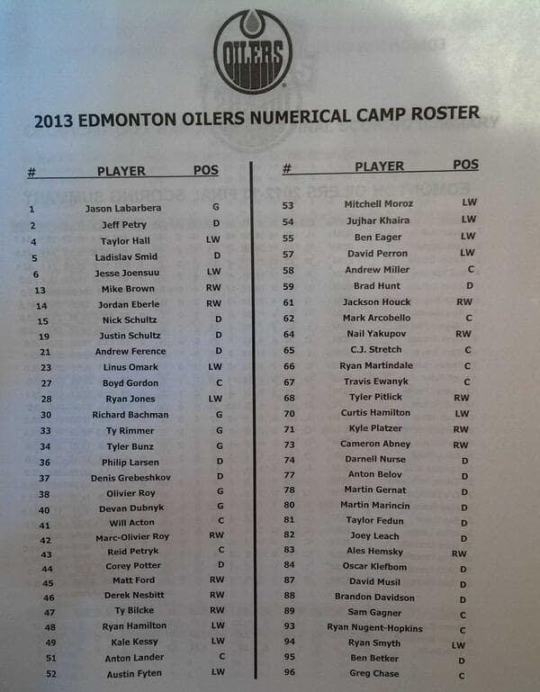 The Oilers main camp starts today, and the team released its roster via Twitter this morning. There aren’t any major shocks, but there are a few names Oilers fans might not recognize.