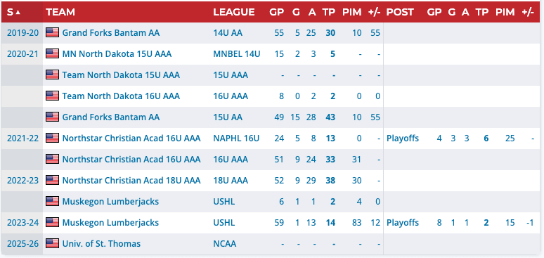 Listed at 6’4″, 198 pounds, Berry was ranked No. 154 among North American skaters by NHL Central Scouting coming into the draft. He scored one goal and 14 points over 59 games in his first season with the Muskegon Lumberjacks of the USHL in 2023-24 and is committed to play for the University of St. Thomas starting in the 2025-26 season.