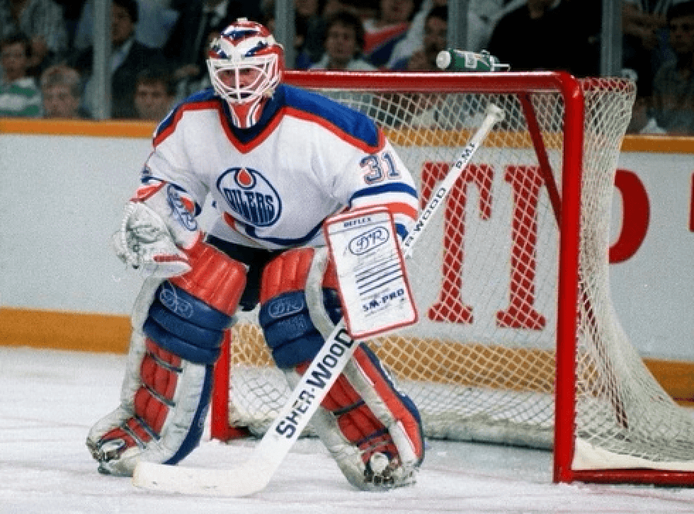 We’ve seen this look before.. it feels oddly familiar, right? There’s a simple answer to it really, the Heritage Classic set up for Skinner pays homage to the iconic setup of legendary Oilers netminder Grant Fuhr had in the late 1980’s early 90’s.