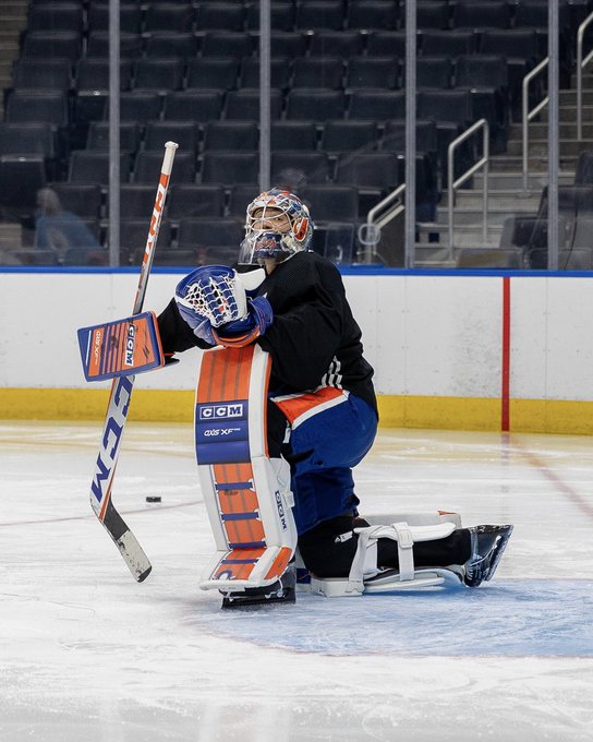 On Monday, Skinner took the ice for practice with a different look than usual; instead of boasting his classic white pads with orange and blue stripes on the bottom, he was looking a little more retro, vintage perhaps.