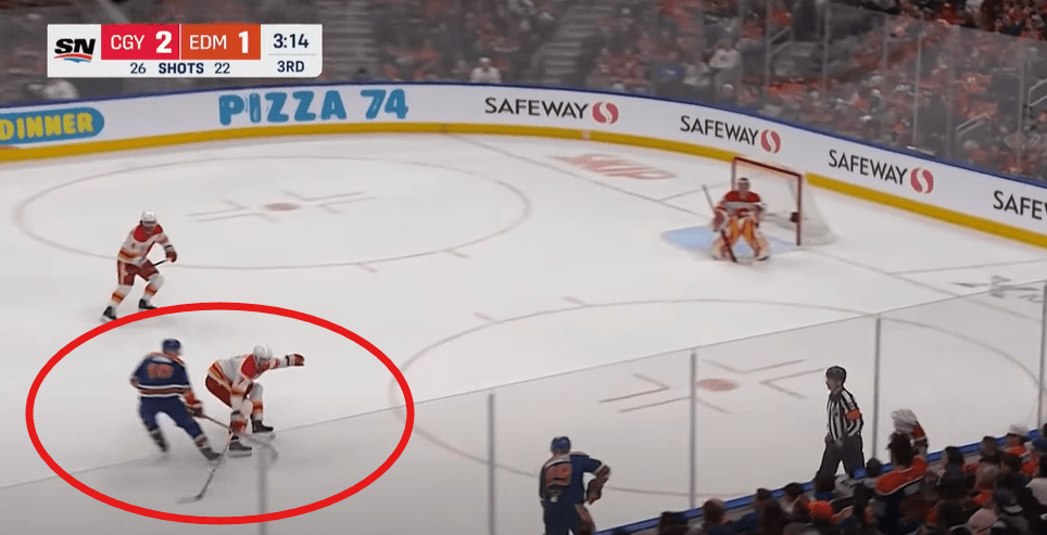 Hyman couldn’t generate much offence in the tight-checking Battle of Alberta against the Flames. However, he made a subtle move on the game-tying goal that may have gone unnoticed—but it was a sneaky good play.