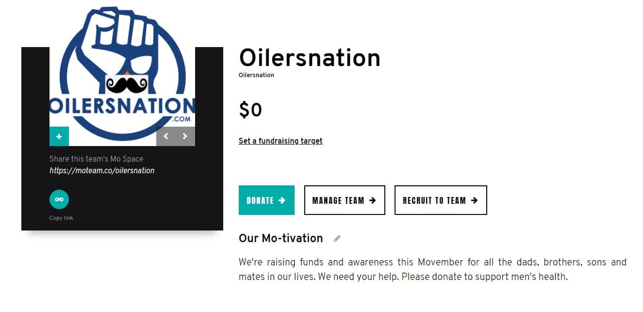 We have created a team over at the Movember site (Team name: Oilersnation) and you are more than welcome to join up and help us raise some funds for this worthy cause. Just sign up with your personal account and then join the team and let’s show the world what the nation can do to raise some funds for Men’s health initiatives.