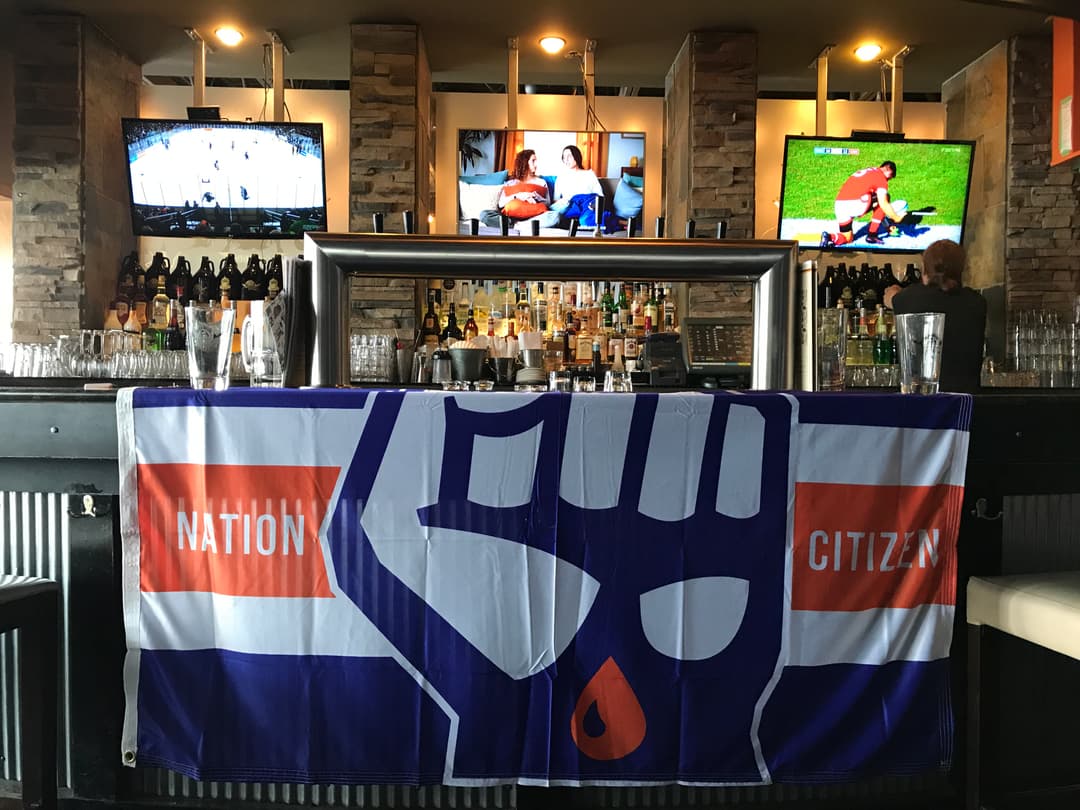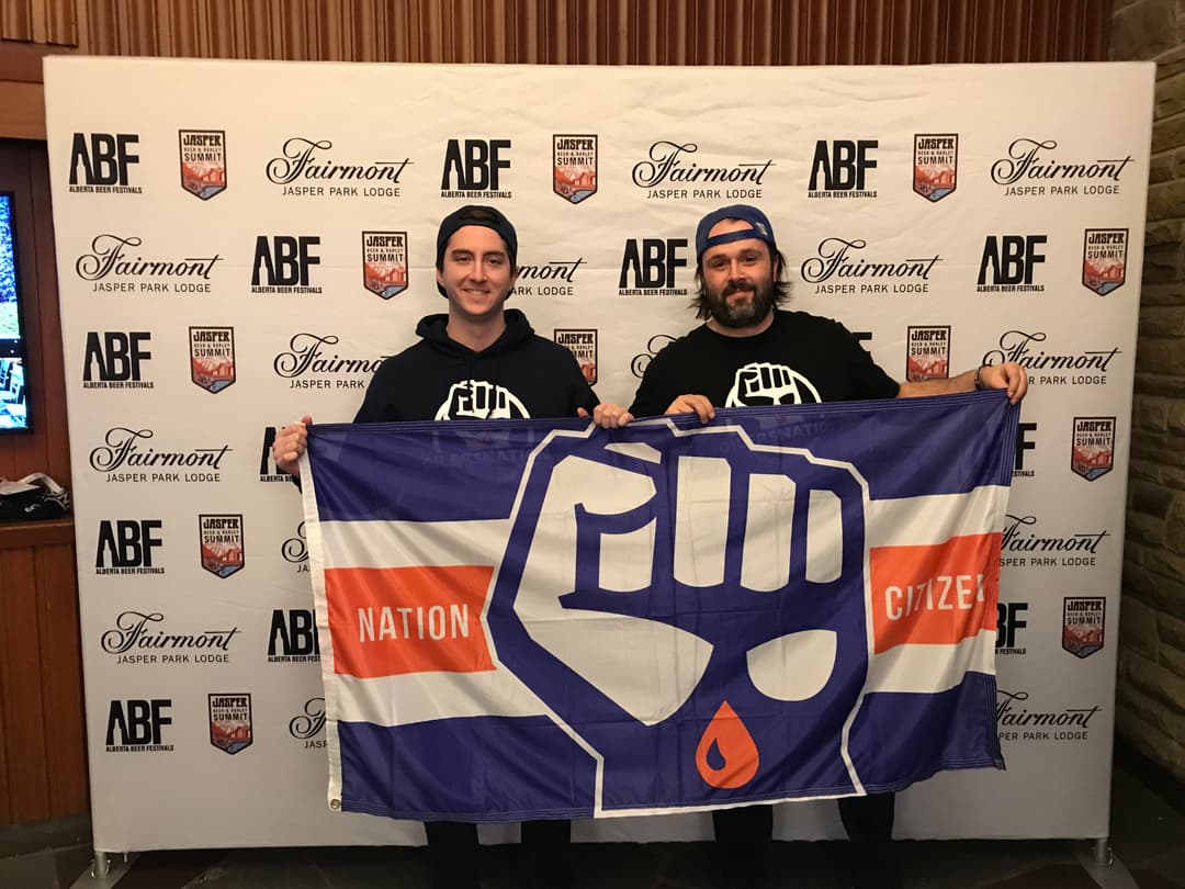 Probably the best part of the trip was how many Nation Citizens we ran into along the way. I mean, we only travelled a few hours down highway 16, but it always blows my mind how easy it is to run into a Nation fan in other cities. It began in the first few hours on Saturday when Adam and I were taking flag photos at the Jasper Brewing Company. One moment we’re snapping pics at the bar, and the next moment David here approaches us to show off his FIST tattoo! Talk about a small world. David and his wife were up for a work event from Edmonton, and we ended up running into them two more times that day.