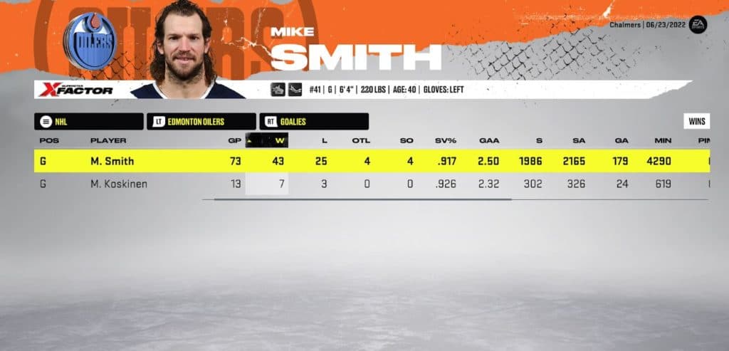 In net, Mike Smith played a whopping 73 games posting a 43-25-4 record, a .917 save percentage and a 2.50 GAA. Not bad if I say so myself.