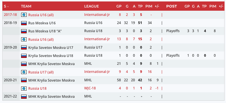 That showing was enough for Petrov to be selected No. 1 overall in the CHL Import Draft by the North Bay Batallion. Due to the COVID-19 pandemic wiping the entire OHL season in 2020-21, Petrov remained in the MHL, where he led his team with 22 goals and finished second in points with 42. There’s no word yet as to whether Petrov will travel overseas to play in the OHL in 2021-22 or if he’ll continue his development in Russia.