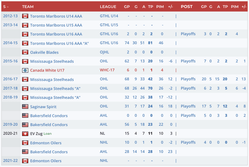 That changed in 2021 when McLeod produced well in Switzerland, a very good Euro league, and then put up a point-per-game in the AHL with the Bakersfield Condors. McLeod will be an Oiler in 2021, likely as the team’s fourth centre, but last season indicates he can offer more in the future.