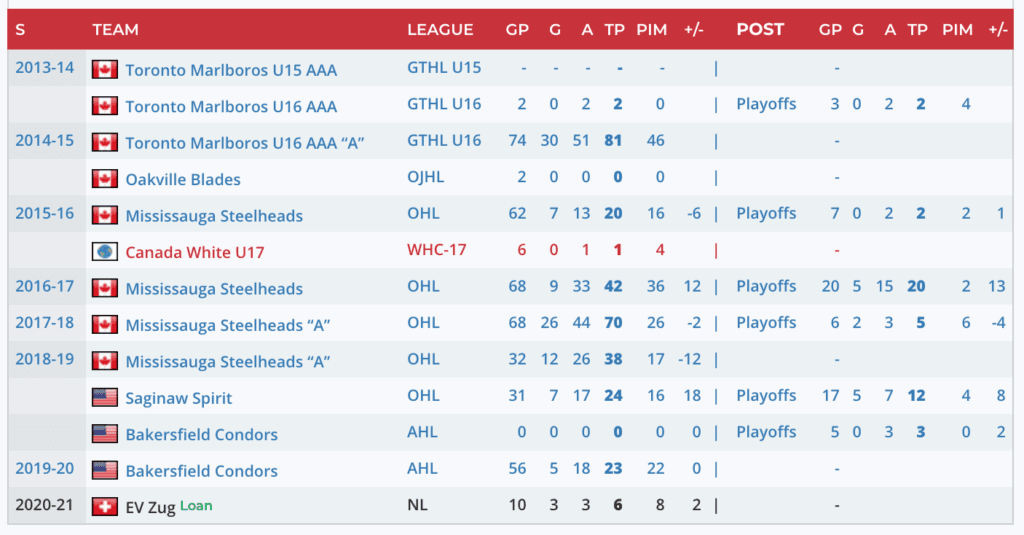 He’s a big, strong, smart centre with incredible skating ability. A package like that makes it very likely that you can carve out a career in the NHL. But the thing with McLeod is that, despite the skillet, his production in both the OHL and AHL indicates a player who will never be quite as good as they could be.