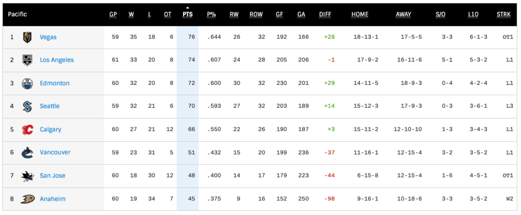 Speaking of teams that find themselves out of a playoff spot, the Flames currently sit on 66 points, four back of the Kraken for the second wildcard spot.