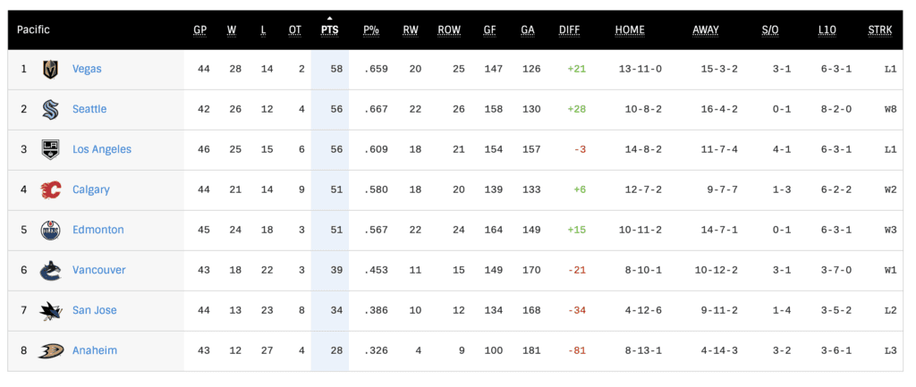 Below are the standings of the wild card race (as well as the top three teams in the Pacific Division) as of Monday, January 16…