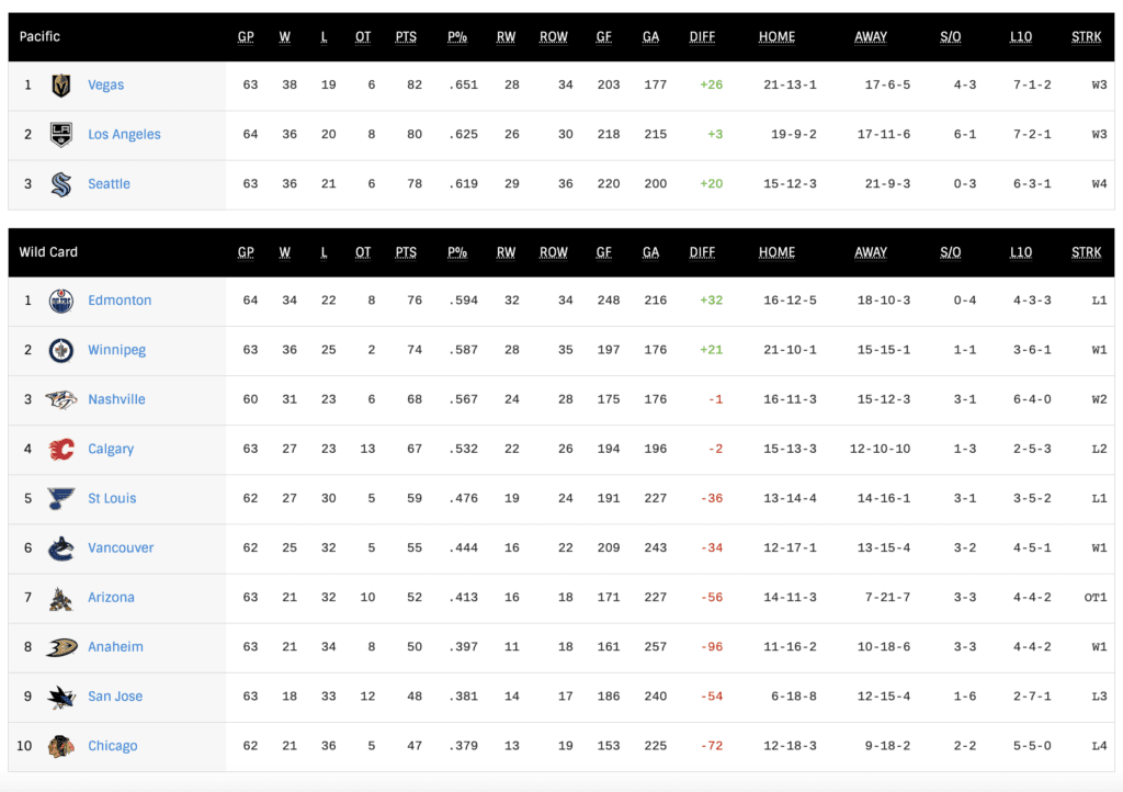 Each week, it seems like the gap between the last wildcard team and the Calgary Flames keeps expanding.